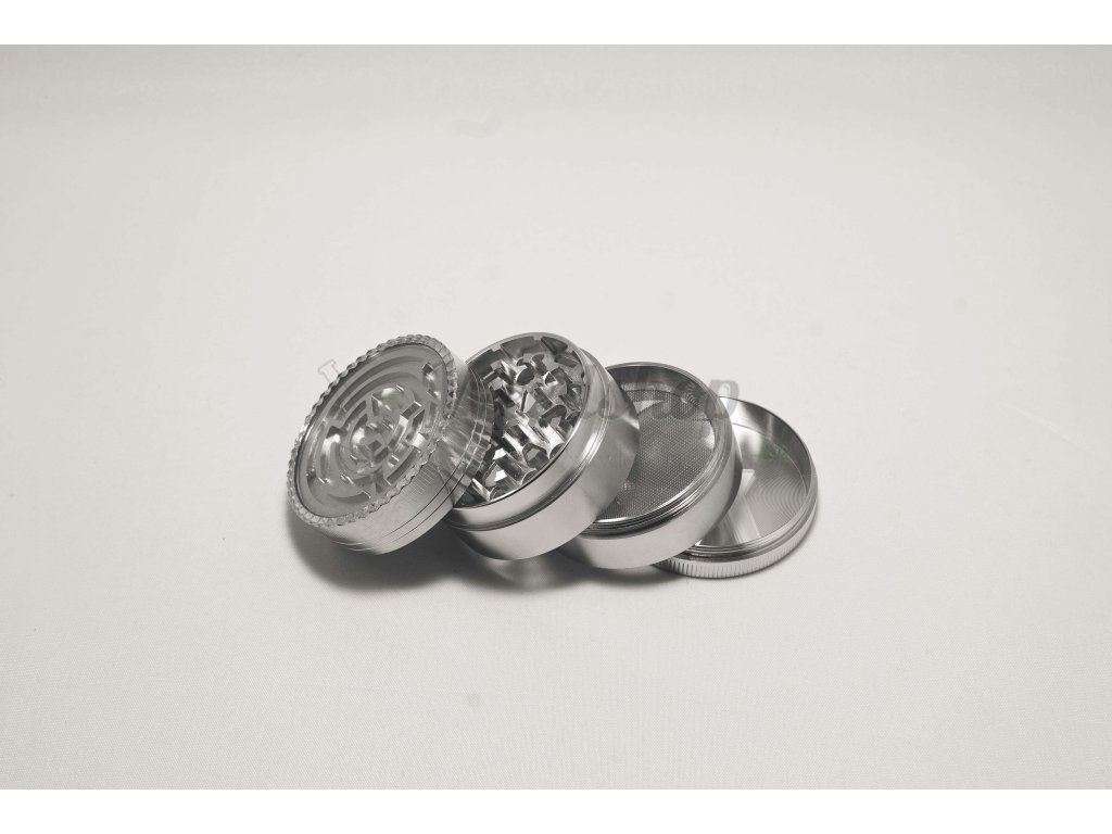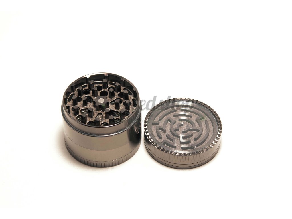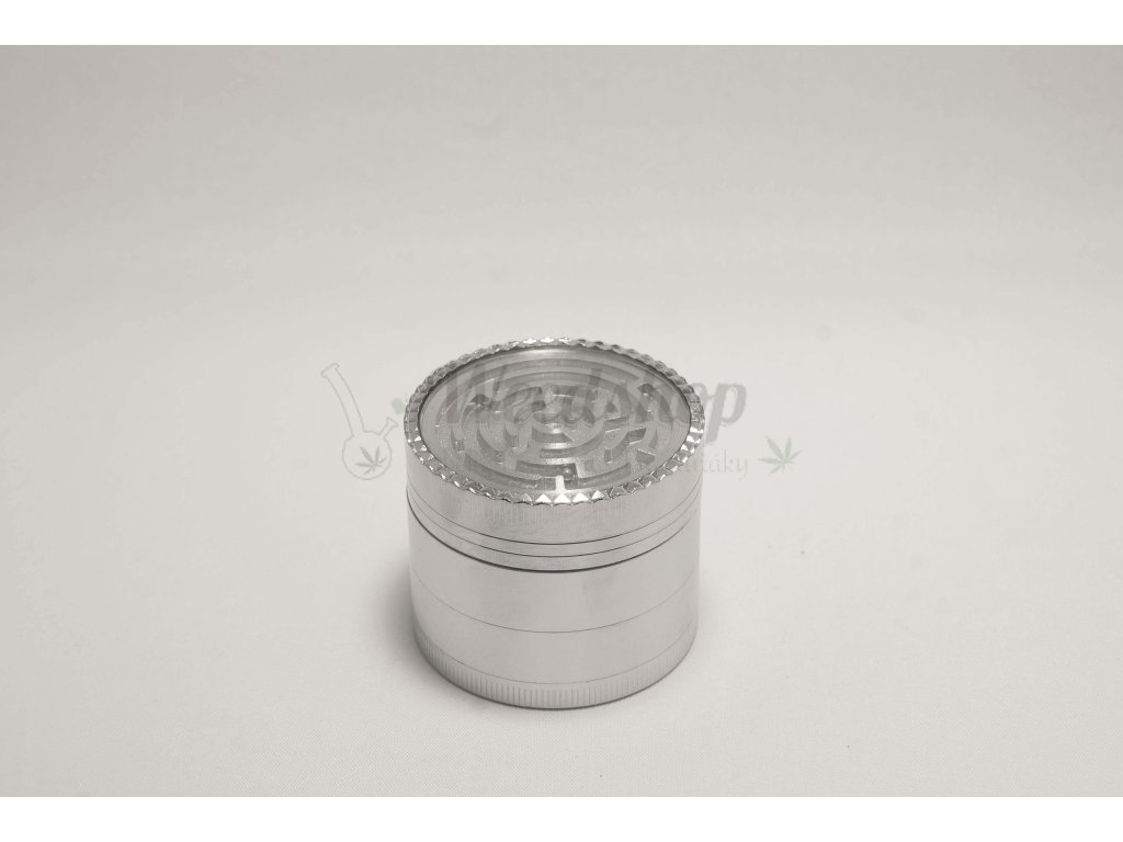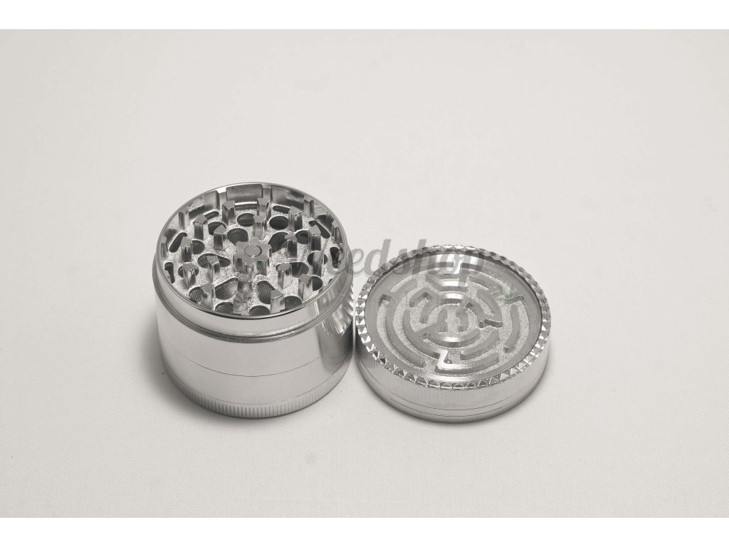 Kovová drtička 4-dílná v různých barvách se zábavným labirintem a kovovou kuličkou, kterou musíte dostat do středu kruhového labyrintu. Drtička má průměr 50 mm a výšku cca 43 mm. Drtičku máme v černé, modré, červené, šedivé, stříbrné a zelené barvě.