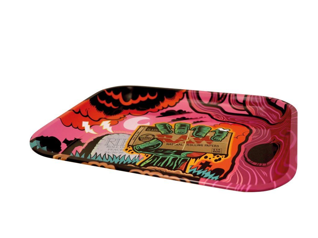 Kovový podklad RAW pro pohodlné balení bez zbytečného nepořádku. Podložka na balení je velikosti XL a je to super pomůcka, která zabrání bordelu při balení.