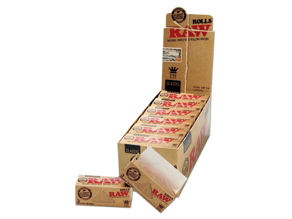 RAW Classic Rolls jsou nebělené rolovací papírky z konopí. Kvalitní papírky o rozměru king size o délce 3 metrů.