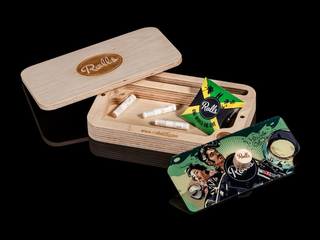 Velká dřevěná kapesní schovka v kompaktní velikosti do které snadno umístíte papírky, filtry a malé množství vašich bylinek. Krabička je opatřená hezkým a kvalitně zpracovaným logem firmy Rolls a je navíc opatřena magnety, které ji snadno udrží zavřenou a zabrání tak vypadávání papírků. V boxu je malá skrytá schovka na nejtajnější potřeby.